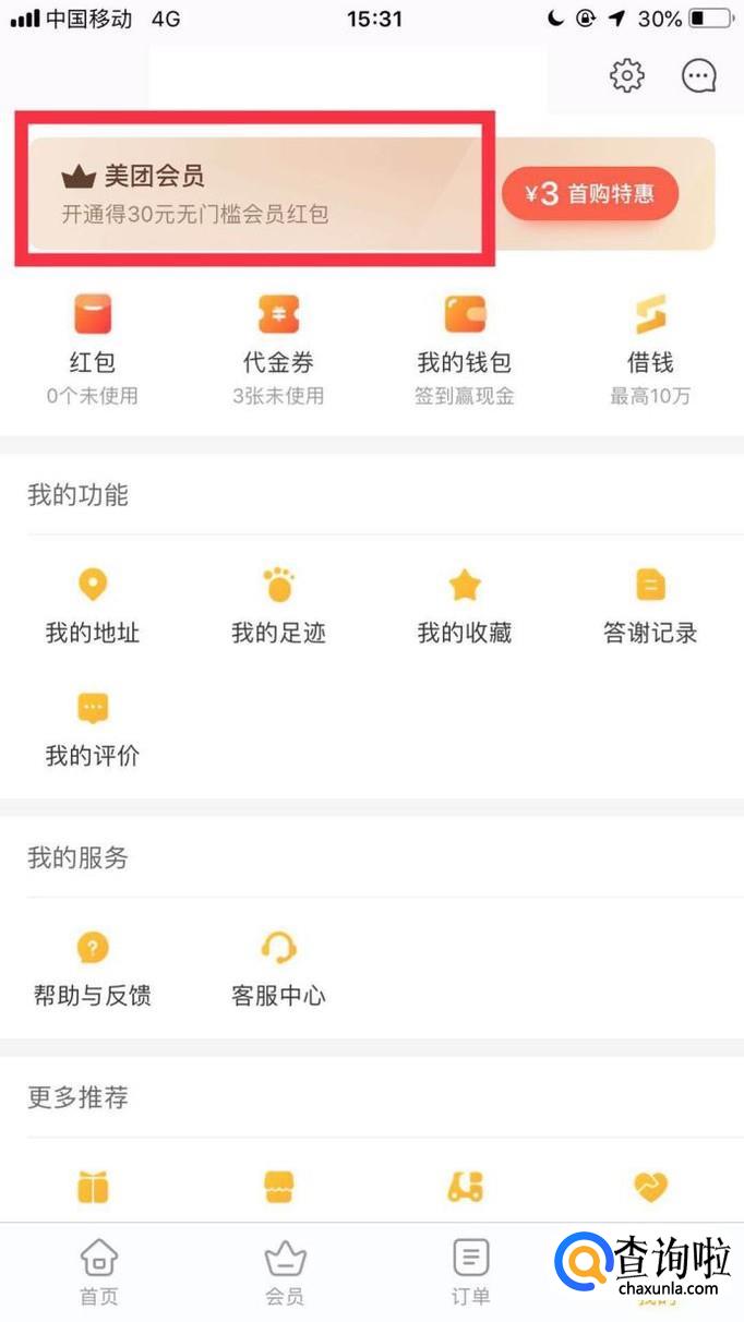 然后点击美团会员。