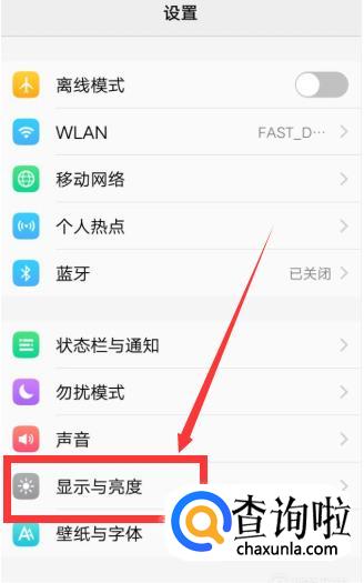 进入设置菜单后点击【显示与亮度】选项。