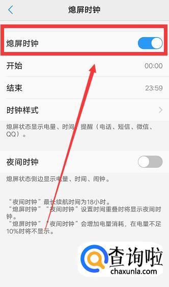 另外在熄屏时钟功能下,系统还提供了“夜间时钟”功能。