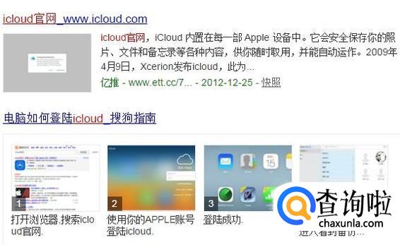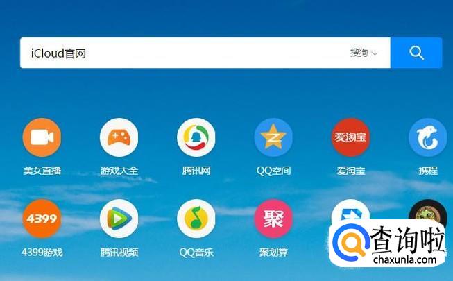 首先在搜狗浏览器中输入iCloud官网并点击回车键,如下图所示。