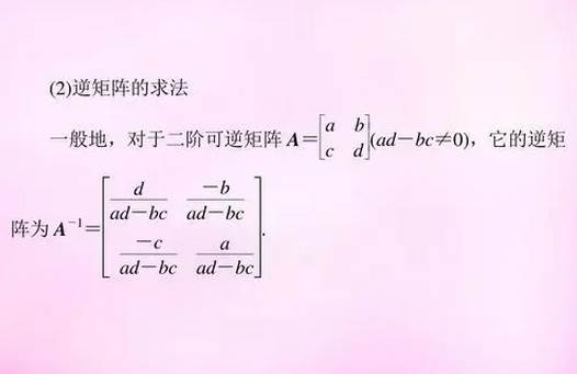设A是数域上的一个n阶矩阵,若在相同数域上存在另一个n阶矩阵B,使得:AB=BA=E,则我们称B是A的逆矩阵,而A则被称为可逆矩阵。注:E为单位矩阵。可逆矩阵一定是方阵。如果矩阵A是可逆的,其逆矩阵是唯一的。