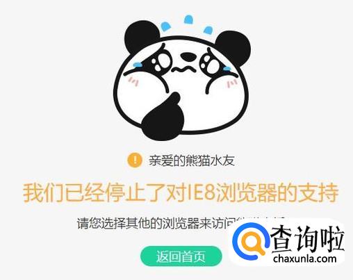 熊猫TV是很多游戏玩家必备的游戏直播平台,但有的人访问却提示“亲爱的熊猫水友。我们已经停止了对IE8浏览器的支持,请您选择其他的浏览器来访问熊猫直播。”,这是什么问题呢?下面我为大家讲解一下原因和解决办法。