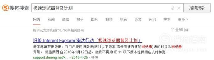 首先搜索“极速浏览器普及计划”,打开 旧版 Internet Explorer 淘汰行动 网站页面。
