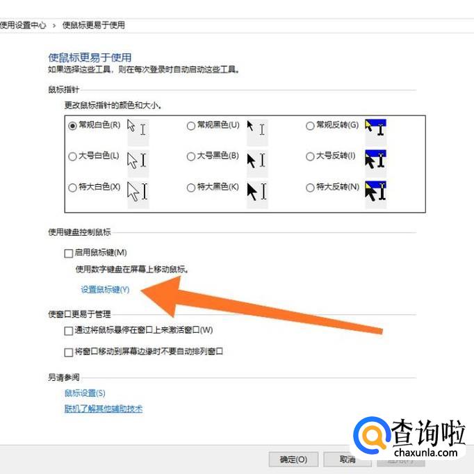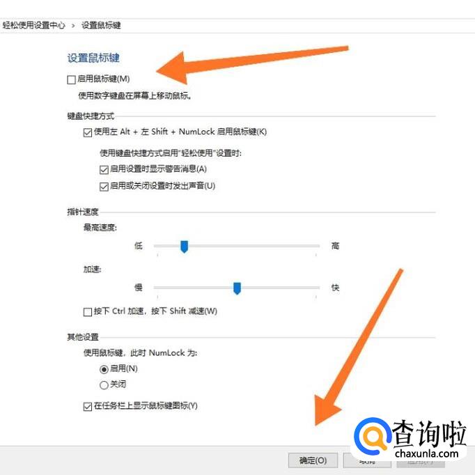最后勾选“启用鼠标键”,设置好指针移动速度等,点击“确定”即可。