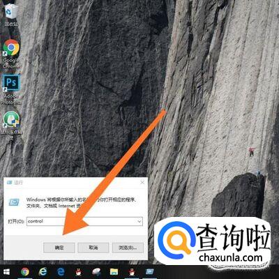 弹出“运行”程序后,在“运行”框内输入“control”,点击“确定”。