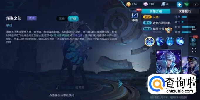 诸葛亮的基础核心就是通过技能攒出被动,被动的叠加有着不小的法伤,是居家常备的利器。