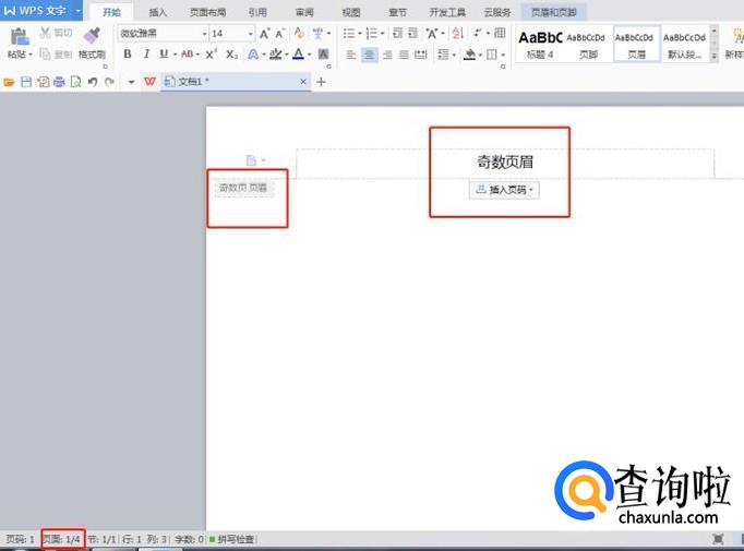 首先为了更好的区分单双页,也为了让大家看到后面的效果,我在文档中建立了4个页面!如图所示: