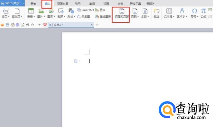 然后在编辑区上方导航栏里找到“插入”——“页眉页脚”选项,如图所示: