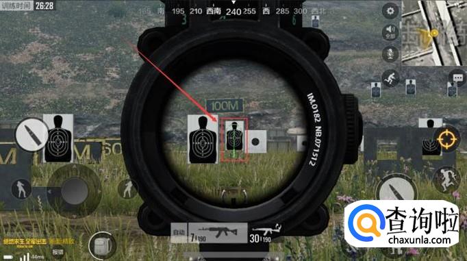 3倍镜比较适合中距离作战,在3倍镜准星外围有一个圆圈。通过这个圆圈,可以通过对比敌人的肩宽大致估算对方和自己的距离。