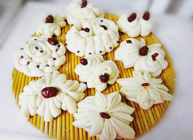 花馍是中国民间面塑品,也称“面花” 。闻喜花馍是山西省运城市闻喜县的传统名点,因花式各样而命名。闻喜花馍盛行于明清,已有1000多年历史,已形成独特的艺术风格和完整的创作体系。首先根据家庭实有人数,给每个人先捏一个大花馍。