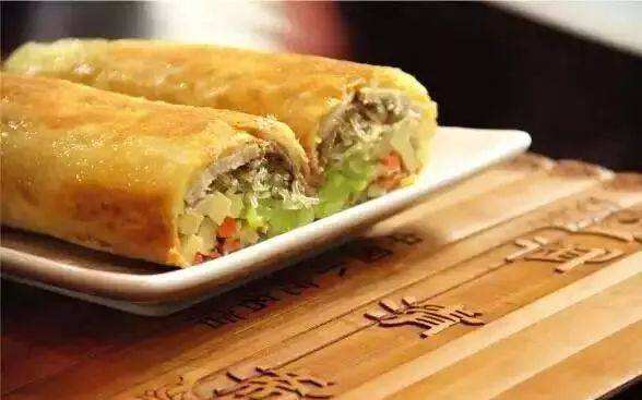 麦油脂是类似于春卷的食物,麦油脂是浙江台州的地方传统小吃,属于浙江菜系传统节日食品,相传,饺饼筒是济公所留下来的:济公在国清寺为僧时,见每一餐都剩下许多菜,觉得很浪费,就把这些菜裹在糊拉汰皮里供下一餐再食用,这种做法受到了众僧的喜爱,便流传至民间。