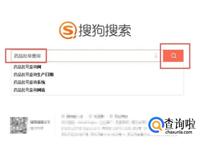 首先,我们打开我们电脑上面的浏览器,然后我们在搜索引擎中输入药品批号查询,然后我们点击后面的搜索按钮;