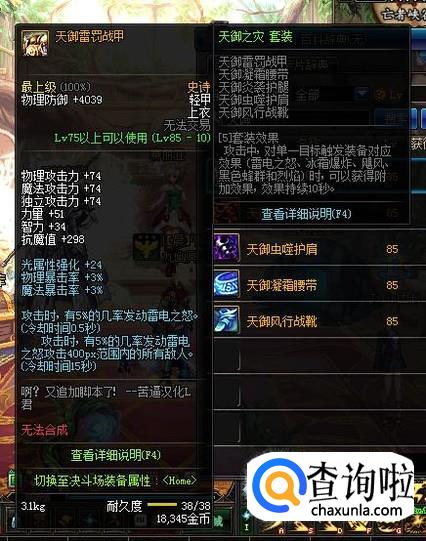 首先要说的就是天御套装,天御套装在85级的史诗套装中可以说是最强的存在,在提供不错的伤害加成的同时,还不易与其他装备发生冲突,并且还可以提供不错的三速以及暴击率。