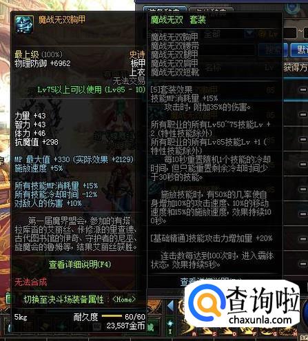 其次就是魔战套装,作为板甲类职业的本命套装,虽然较之85版本时进行了削弱,但是在85级的史诗套装中,依然是不错的选择,很大程度的减少了技能的CD,使得连招更为流畅。