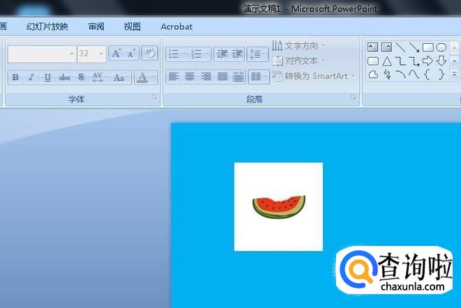 首先,我们打开一个纯色背景的PPT文档,然后插入图片来演示,如图所示,插入图片之后,感觉不大协调,我们需要把白底图片的白底修改成透明色。