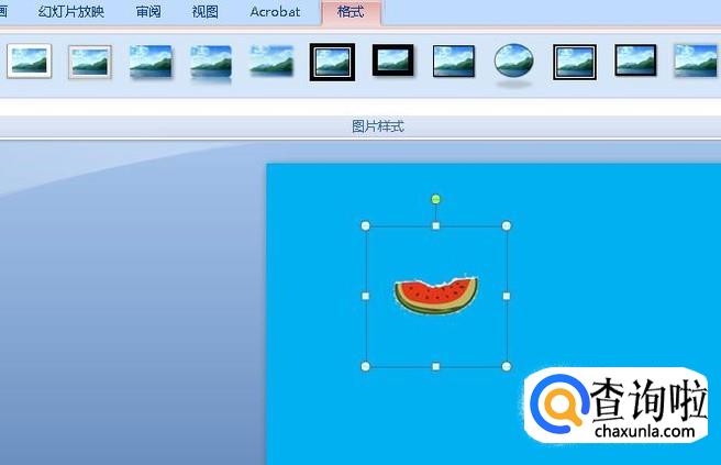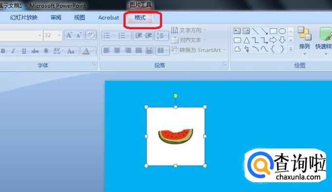 点击一下,选中图片,然后点击菜单栏“格式”标签。