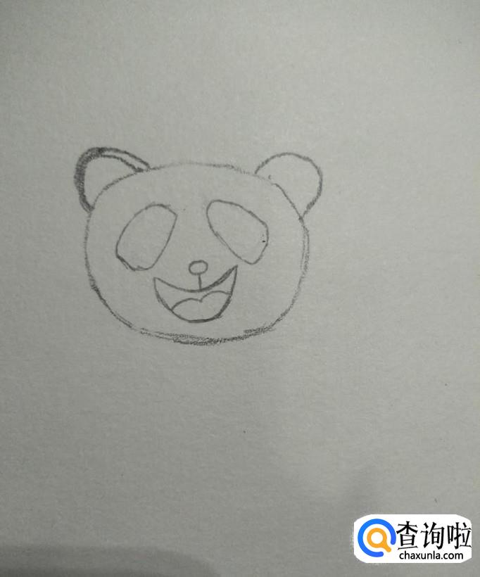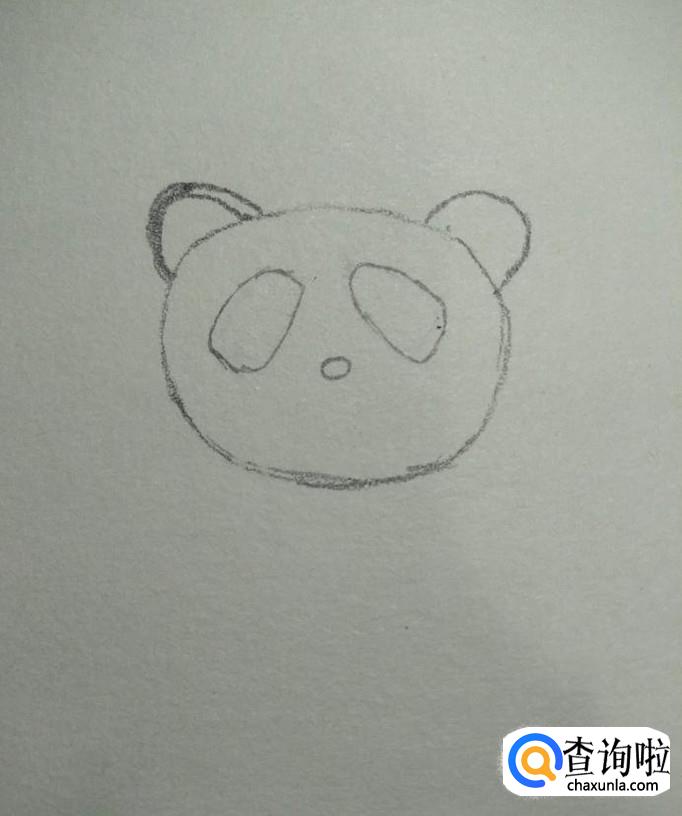然后我们在鼻子的下方,两只眼睛的中间下部画出熊猫的嘴巴,模样如下图所示,到此,整个熊猫脑部的轮廓就画好了。