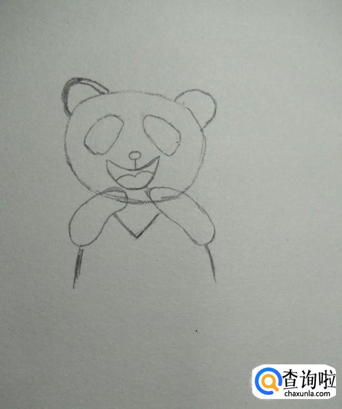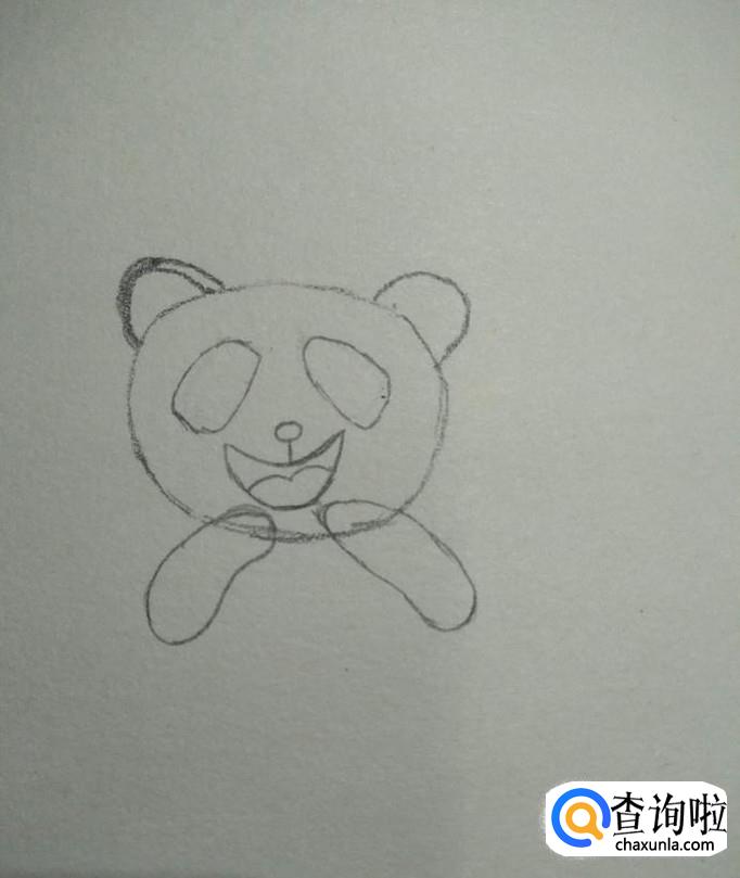 在嘴的左右两侧画出熊猫的手臂,尽量一笔勾成,这样看起来更加的自然