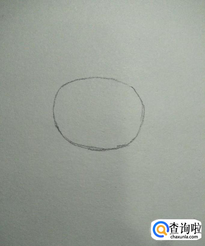 在素描本上画一个椭圆,如下图所示,把其作为熊猫的头部轮廓。