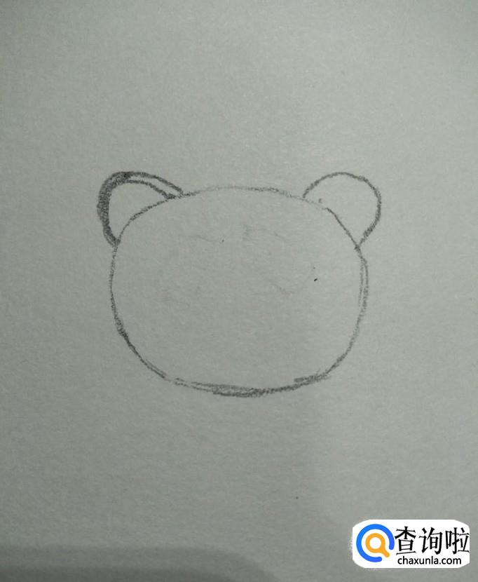 然后我们在其两边画上两个半圆,作为熊猫的耳朵,如下图所示