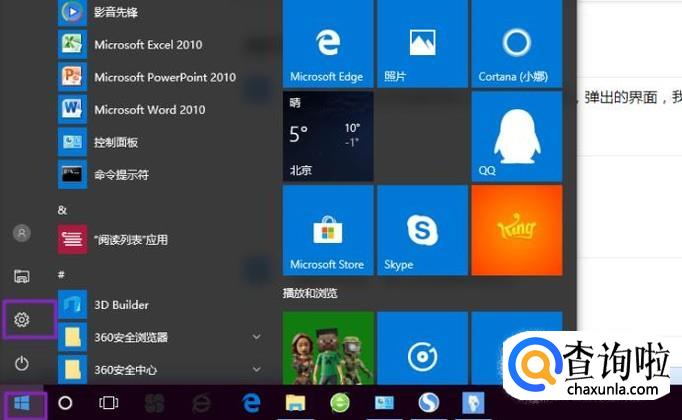 首先,我们点击电脑桌面左下角的微软按钮,弹出的界面,我们点击设置;