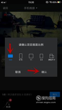 根据需要选择合适的画面比例,如16:9,点击“确认”