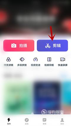 进入软件首页后,点击顶部的“剪辑”按钮