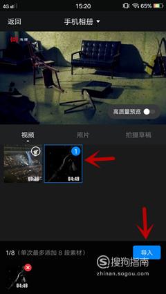 选择好相册内部的视频后,点击右下角的“导入”