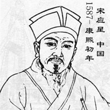 宋应星是中国明末科学家。万历四十三年(1615)举于乡。崇祯七年(1643)任江西分宜教谕,十一年为福建汀州推官,十四年为安徽亳州知州。 明亡后弃官归里,终老于乡。在当时商品经济高度发展、生产技术达到新水平的条件下,他在江西分宜教谕任内著成《天工开物》一书。
