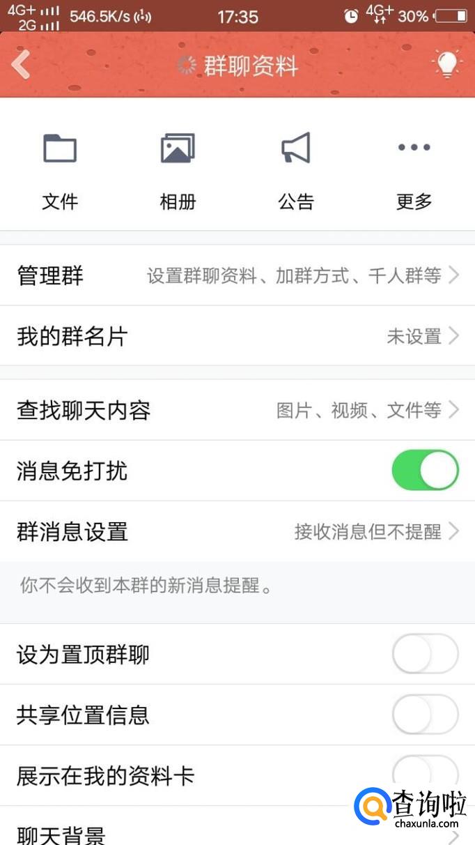 然后我们在好友列表页面点击群聊在找到自己要禁言的群点击进入到聊天状态