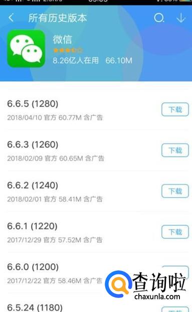 进入之后,即可看到微信的历史版本,点击“下载”即可,如图所示。