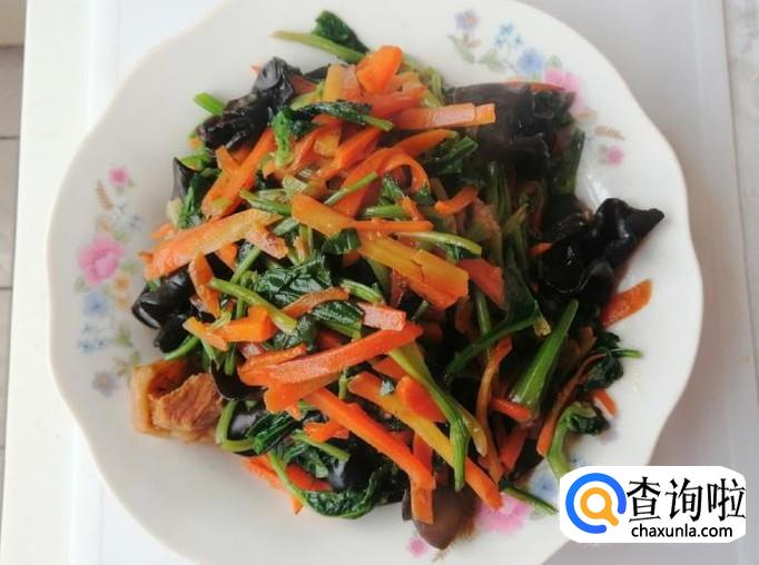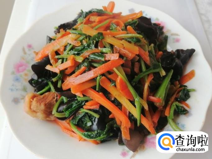 经常食用胡萝卜,具有治疗贫血、感冒、便秘、高血压,防止癌症,健胃,美容等作用。今天小编就选用胡萝卜,搭配木耳和菠菜炒肉,炒出来的菜好看又好吃,下面我把做法分享给大家,喜欢的朋友可以看看。