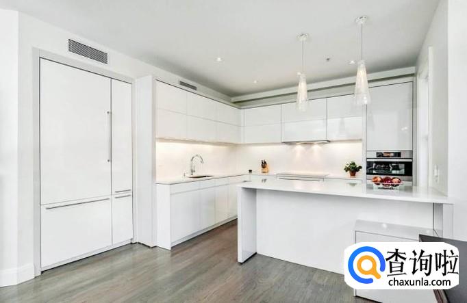 橱柜吊柜应距离地面1450mm~1500mm,这个高度适合大多数下厨者的身高,使之不用踮脚就能开启橱柜并取出器皿。