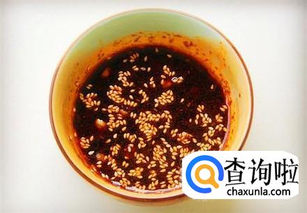 碗里加上生抽、蚝油、辣椒油、大蒜末、姜末、葱花,再加上一些白糖和食盐、芝麻、味素调匀。