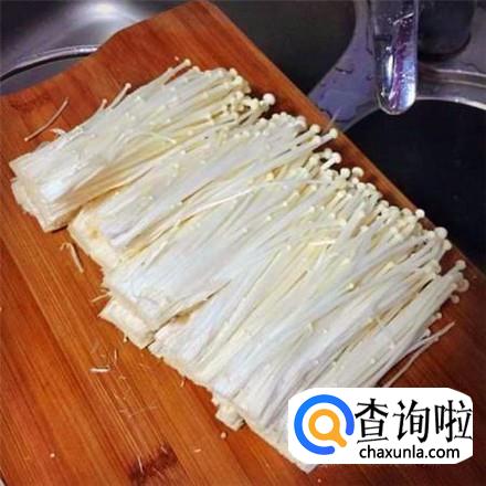 金针菇把底部切掉,然后分成一小缕一小缕的样子,清洗干净控干水。