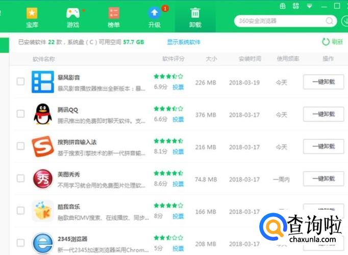 造成以上情况,有时是由于下载安装时不知道设置路径,造成默认下载安装到C盘,时间长了C盘空间越来越小,就会使电脑运行卡慢。我们可以打开安全防护软件(比如360安全卫士或腾讯电脑管家),在其中的软件管理中把没用的软件卸载,或者卸载后需要的话在安装到别的磁盘。