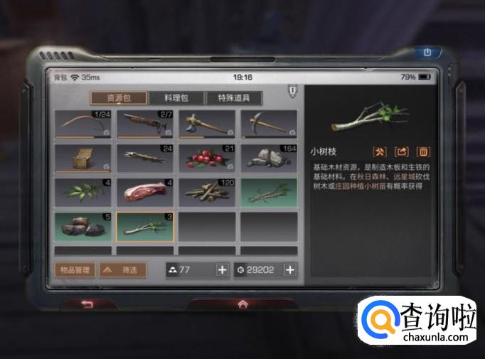 而小树枝在野外砍伐树木的时候有几率获得。
