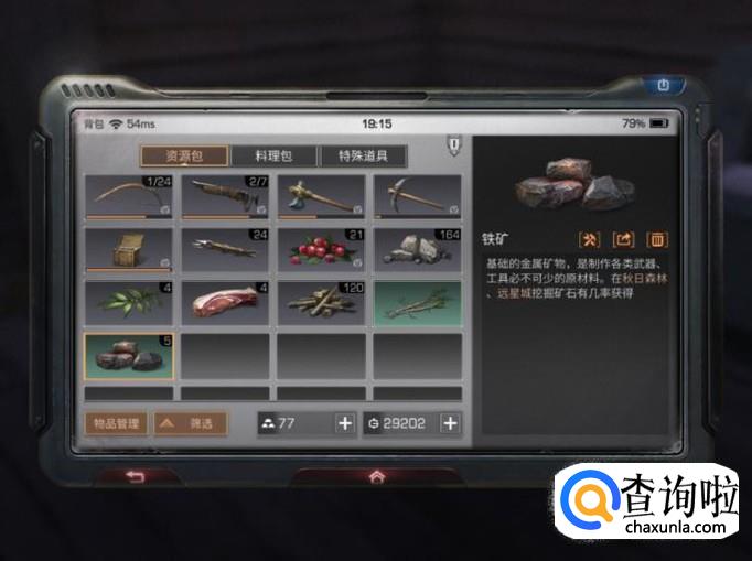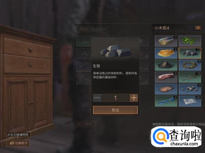 玩家想要获得生铁,首先需要拥有铁矿跟小树枝。游戏中玩家在采集石头的时候有几率获得铁矿。