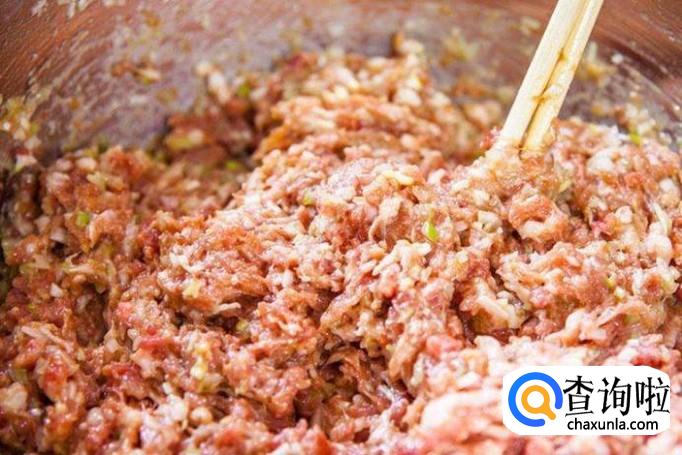将以上材料剁碎,如果可以的话,使用绞肉机是最方便的,然后准备一碗高汤。