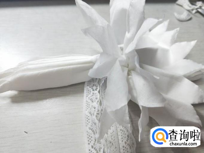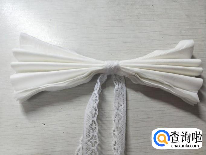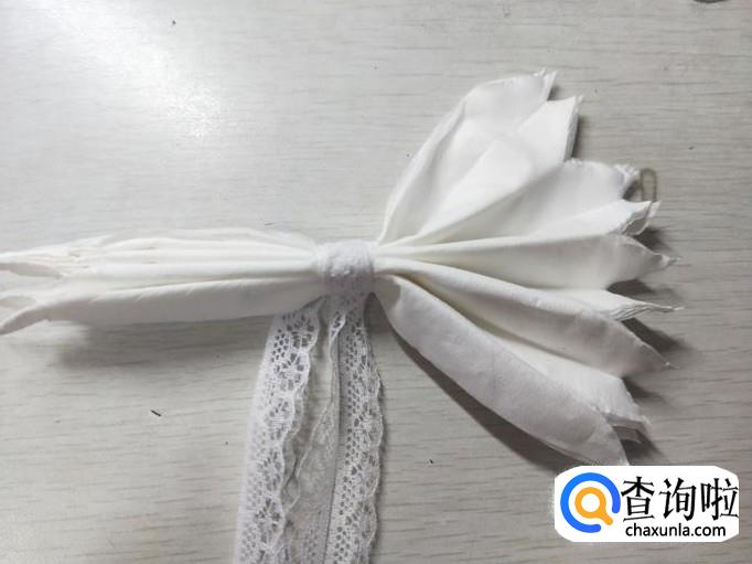 用剪刀减去蝴蝶结的末端,如下图:(也可以根据自己的喜好剪不同的花瓣)