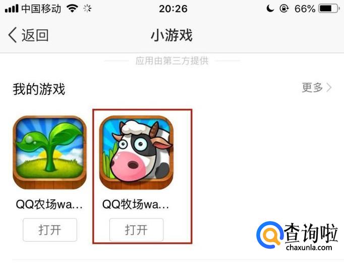 接着点击QQ牧场下方的打开,如下图所示。