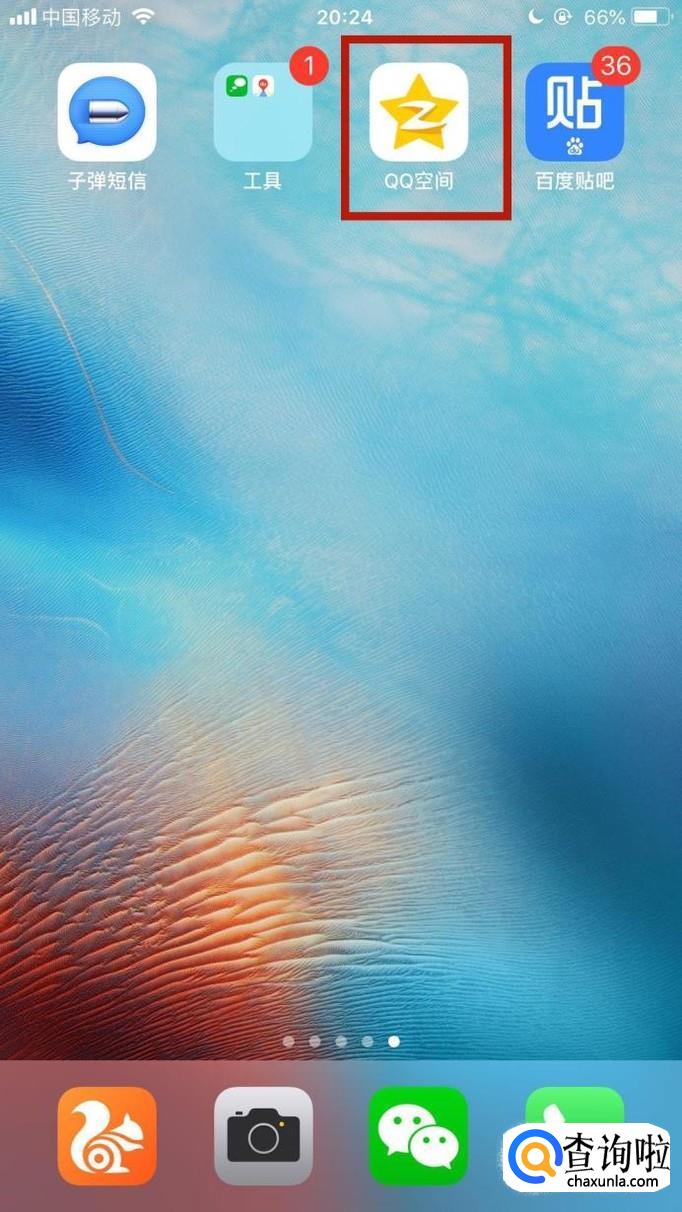 首先在我们的手机桌面上找到QQ空间并点击它,如下图所示。