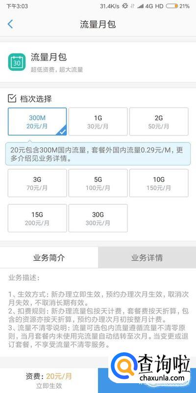 选择流量套餐后,点击确认即可办理。