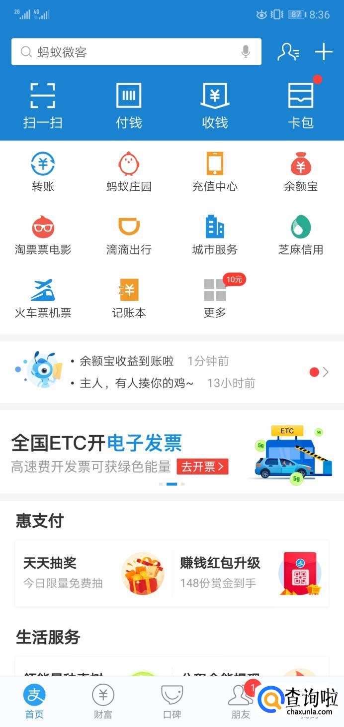 然后打开支付宝,进入首页。