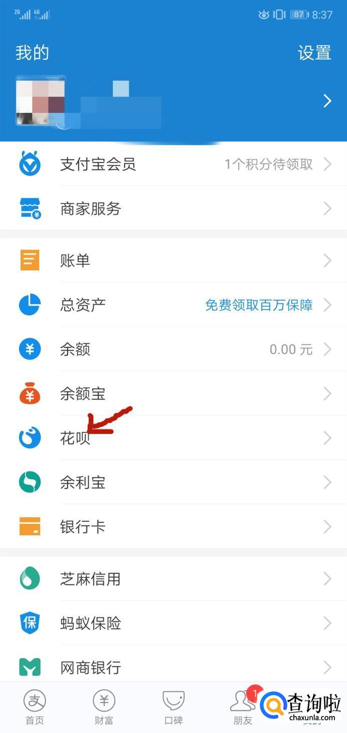然后点击“花呗”。