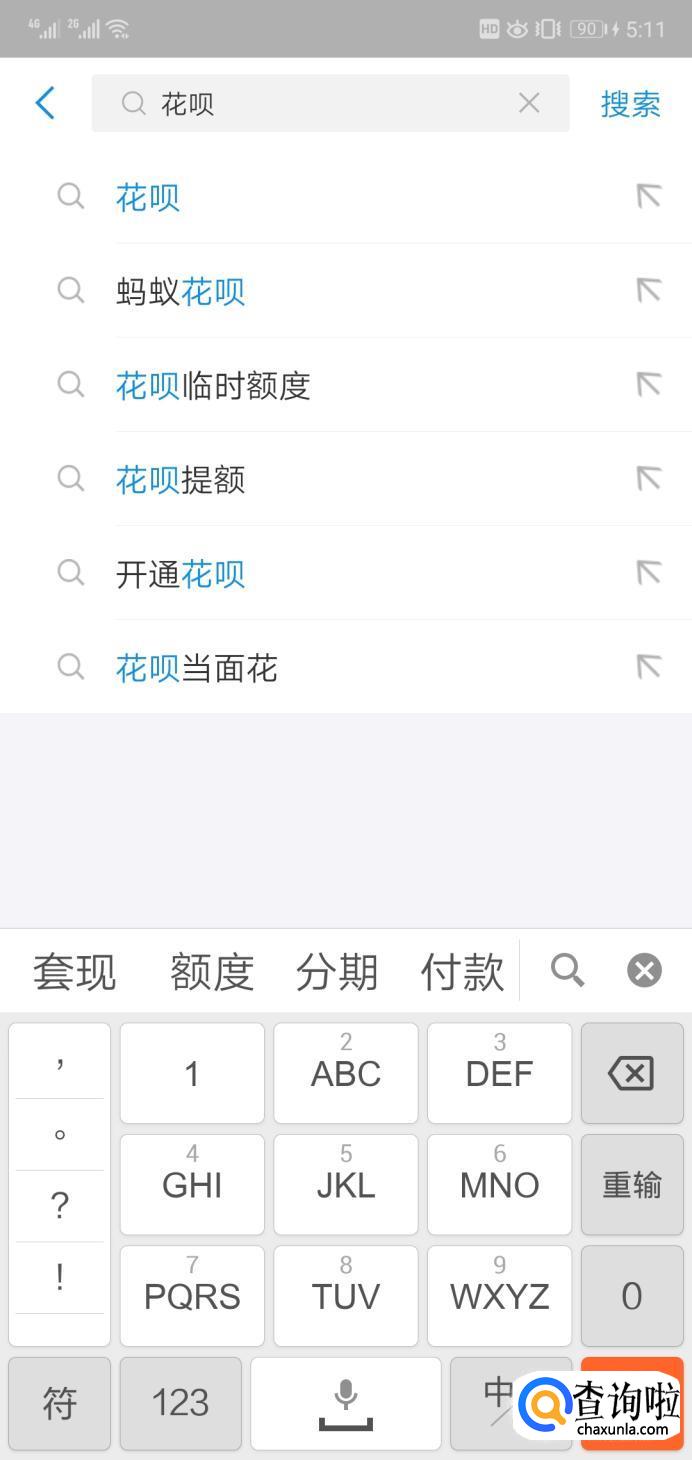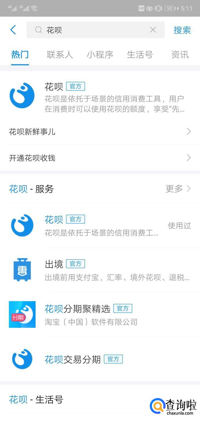 还有一种方法是打开支付宝页面,在搜索栏搜索“花呗”。