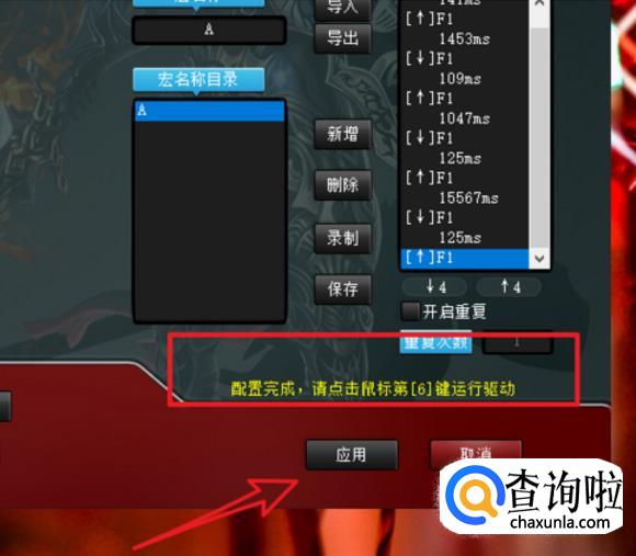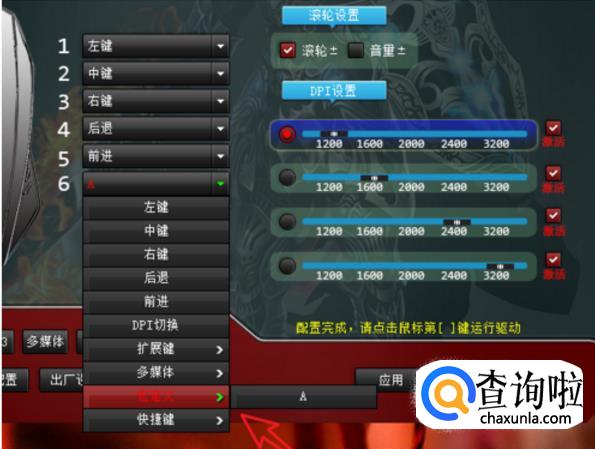 点击下面的应用,之前需要按住这个鼠标上的那个宏设定键,然后进行设置,这样才算完成。