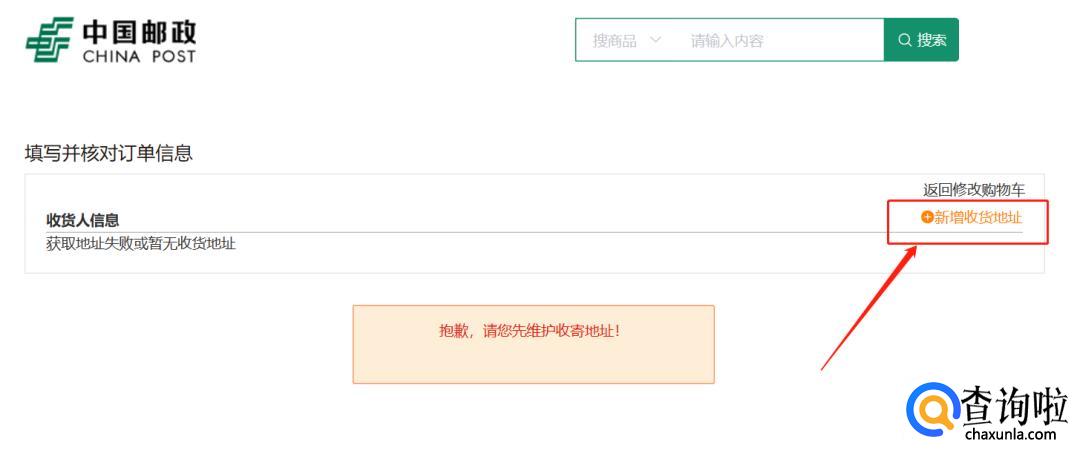 这时候会出现失败的提示,点击【新增收货地址】添加好地址后再购买就可以了: