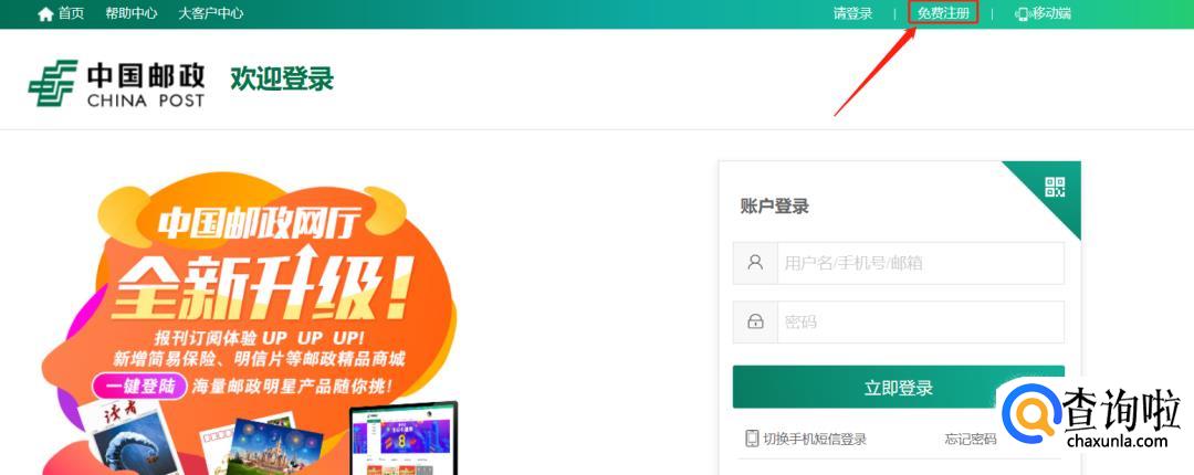 登陆中国邮政官方网站【http://11185.cn/】: