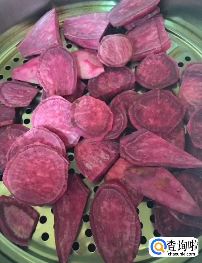 首先我们把紫薯清洗感干净,去皮切块,放入蒸锅中蒸熟
